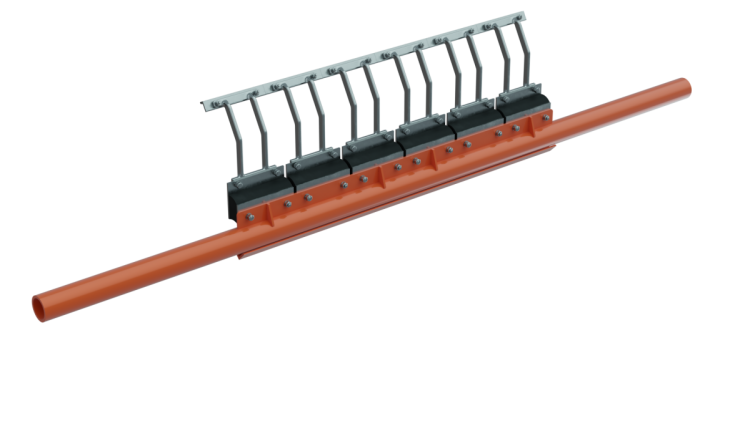 Designed to efficiently remove carryback, the H1 Primary Belt Cleaner HD is suitable for most material types. Its tungsten carbide tips provide exceptional performance, particularly in applications involving abrasive materials or high‑speed conveyor belts. Blade arms are available in a range of sizes to accommodate head pulley diameters from 10 to 60 inches (250 to 1,700 mm). A compression spring tensioner maintains consistent cleaning pressure while minimizing the need for adjustment throughout the life of the blades.